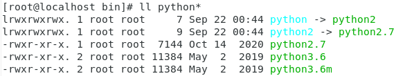 lrwxrwxrwx. 1 root root 9 Sep 22 00:44 python2 -> python2.7